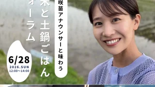 お知らせ 島津咲苗アナウンサーと味わう お米と土鍋ごはんフォーラム(6/28)のご案内 島津咲苗アナウンサーと味わうお米と土鍋ごはんフォーラム- スペシャルイベント -2026.6.28(日)12時~島津咲苗アナウンサーと味わう、土鍋ごはんの特別体験島津咲苗アナウンサーと交流しながら、土鍋ごはんや、地域食材をメインにした美味し... 2026.04.21 お知らせ